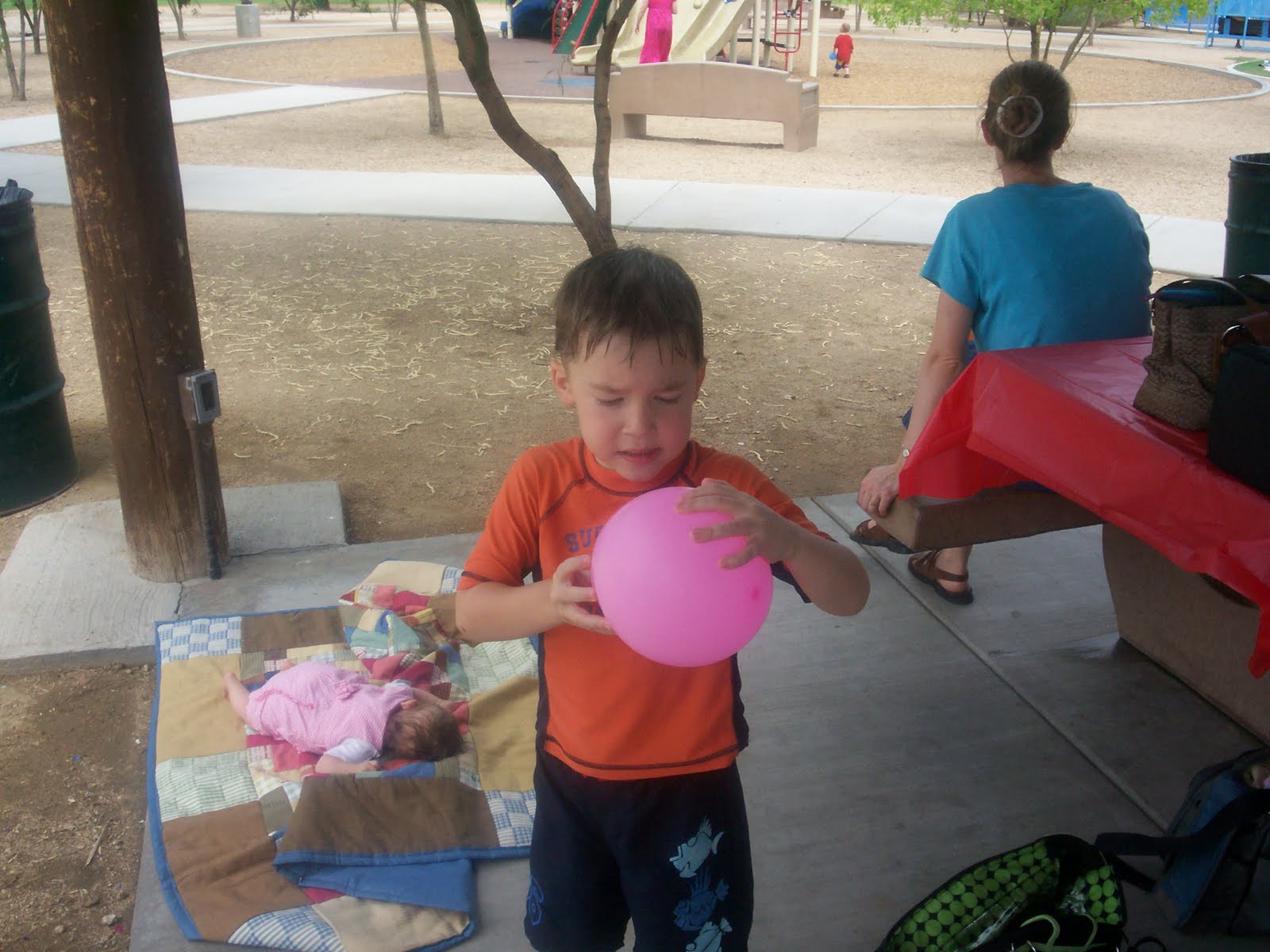 During our next trip to Phoenix, Daryn's family added Rex (a flashlight), Slinky Dog, and an LGM to her Toy Story collection, as well as a Toy Story blanket. Our friend Tiffany and her son Gage gave her a camping chair with Toy Story on it.